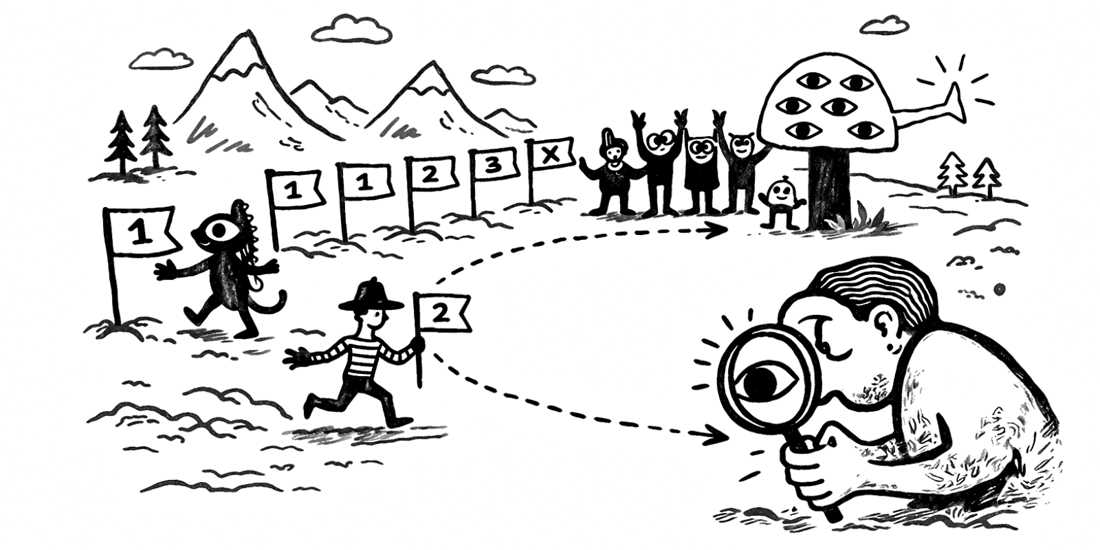 One runner per team sprints approximately 50m to grab a numbered flag (1 to X, based on the number of participants).