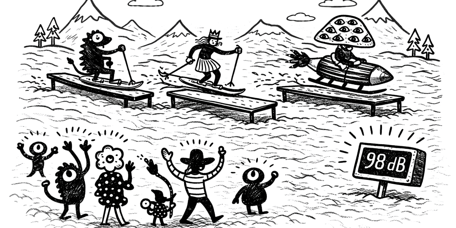 The rider gets three attempts and can use any object for sliding (skis or snowboards are optional). The performance is judged primarily on showmanship and audience engagement, not technical difficulty. The rider aims to generate the maximum excitement and the loudest crowd reaction.
